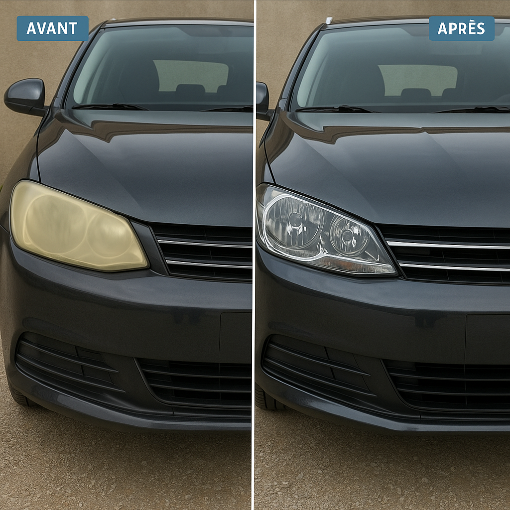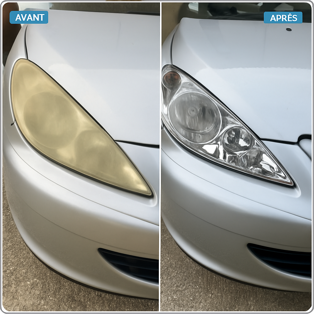 Notre produit agit en éliminant la couche oxydée et les impuretés qui ternissent vos phares. Il restaure leur transparence en quelques étapes simples, améliorant leur efficacité et leur apparence.